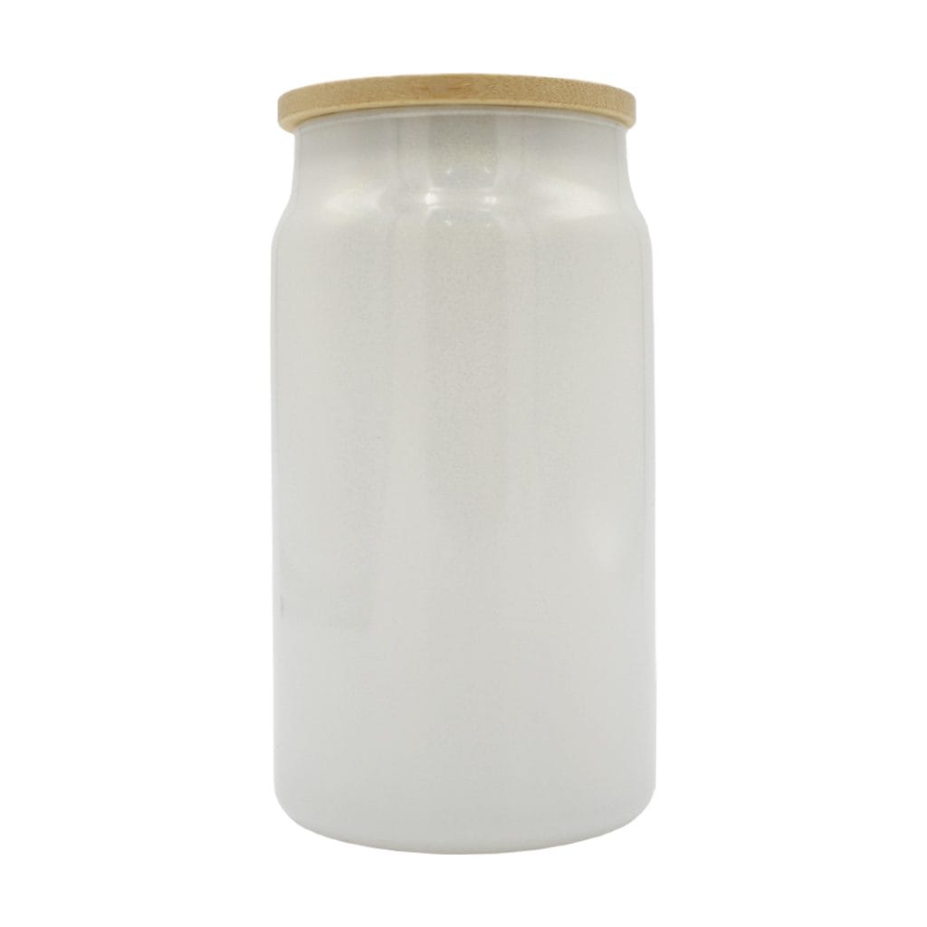 15oz White Glitter Glass Tumbler with Bamboo Lid Sublimation Blank