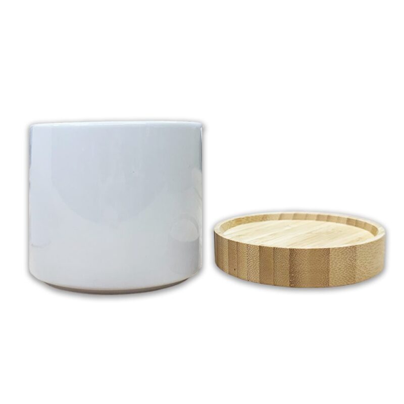 Ceramic Flower Pot with Bamboo Saucer Sublimation Blank